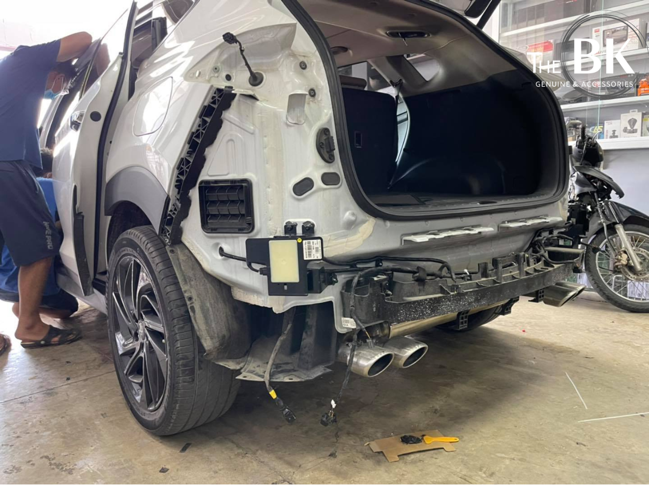 Bước 1: Tháo cản sau và lắp đặt radar: