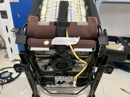 - Lắp quạt làm mát vào bên dưới ghế và đưa ống dẫn gió lên lưng ghế.